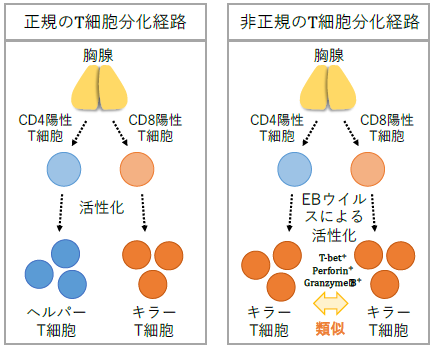 EBウイルスの免疫監視、ヘルパーT細胞がキラーT細胞となってがんを防ぐ-広島大ほか