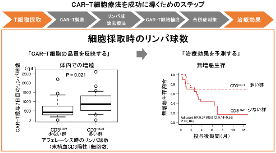 アフェレーシス時末梢CD3陽性T細胞が多いと、投与後の末梢血リンパ球増加・治療効果良好