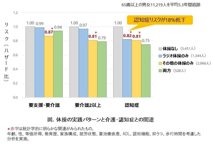 その他の体操のみ実践群、要介護2以上・認知症リスク19%低下