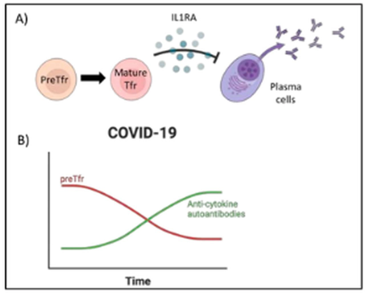 臨床サンプルの解析では、重症COVID-19患者や敗血症患者において、preTfrと成熟型Tfr(cTfr)が著しく減少する一方で、nTregsは安定していた。重要なことに、preTfrの減少は、COVID-19後期における抗インターフェロンγ自己抗体の増加や活性化非定型B細胞の増加と相関しており、COVID-19による死亡率とも関連していた。対照的に、SARS-CoV-2 mRNAワクチン接種者では、接種後にpreTfrおよびcTfrの割合が増加しており、preTfrが制御された免疫応答に関与していることが示唆された。